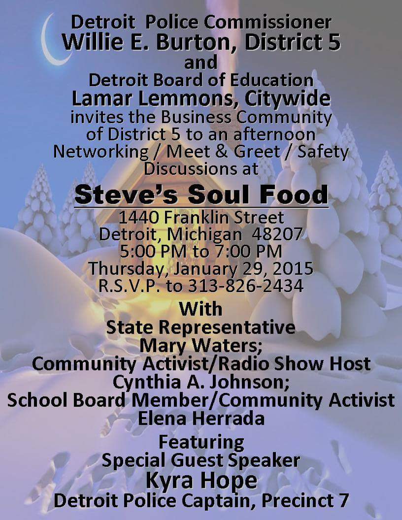 Lamar Lemmons and I invite concerned Detroiters to a Meet & Greet this Thursday at 5:00 PM.